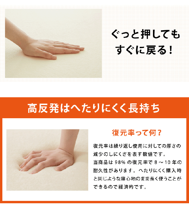 本体:高反発ウレタンフォーム、カバー:ポリエステル100%
