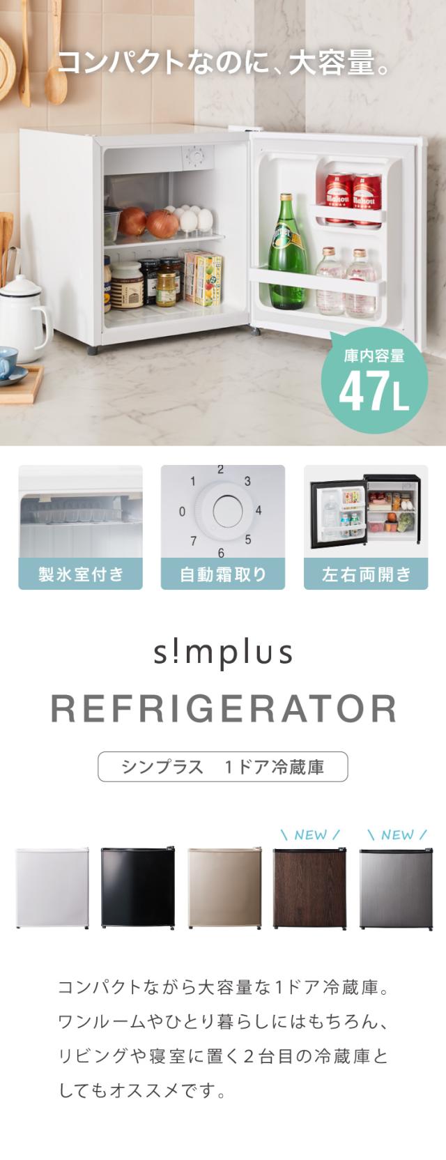 1ドア冷蔵庫 47L 自動霜取り機能付 左右開き simplus 一人暮らし SP-47LD 小型 コンパクト シンプラス 大容量 【メーカー保証1年】