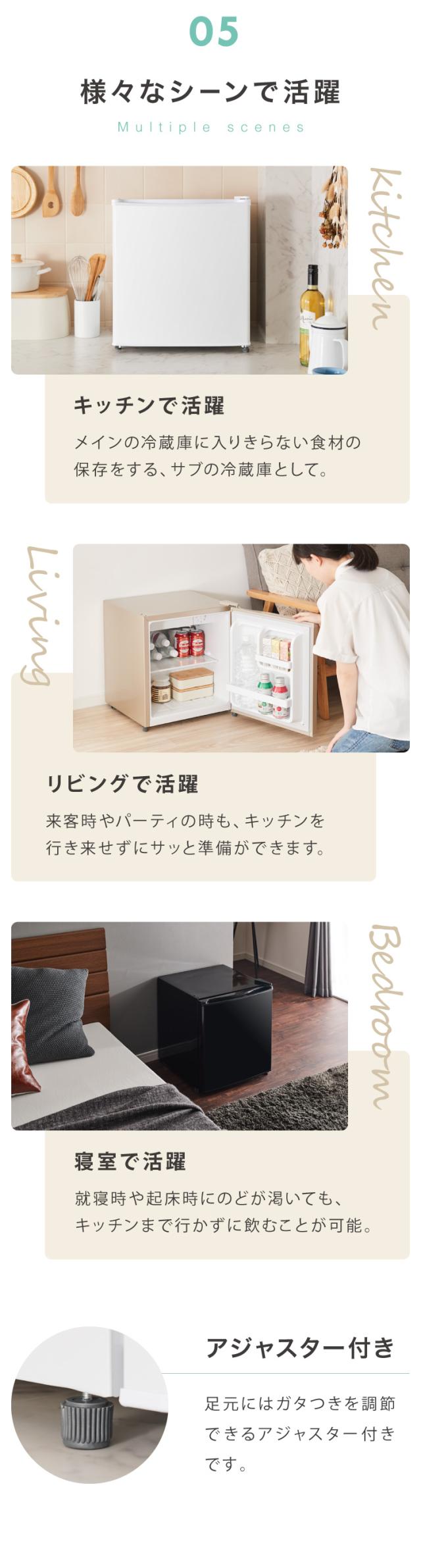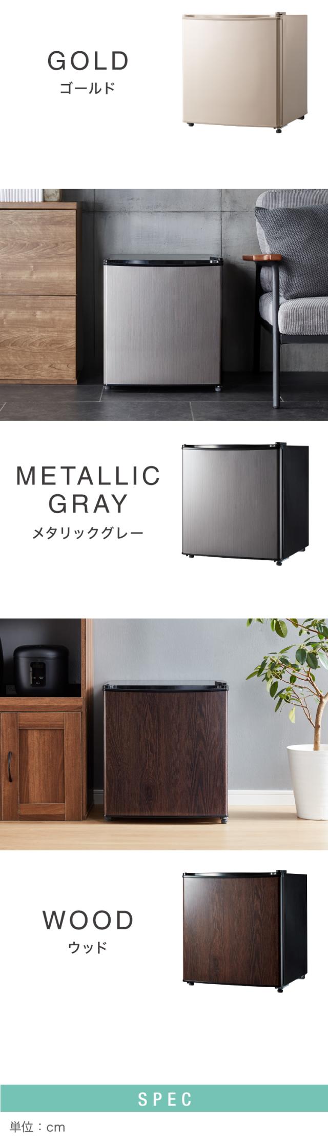 ホワイト、ブラック、ゴールド、冷蔵庫、1ドア、1ドア冷蔵庫、一人暮らし、省スペース冷蔵庫、ミニ冷蔵庫、省エネ冷蔵庫、1ドアフリーザー、自動霜取り、霜取り、食材、保管、シンプルデザイン、省スペース、コンパクト、ホテル、寝室、新生活、セカンド、サブ冷蔵庫、小型冷蔵庫、シンプル