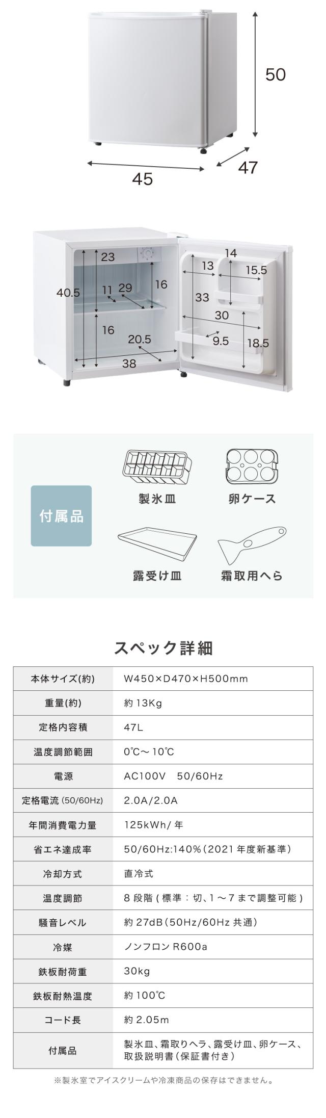 定格内容積:47L※製氷室でアイスクリームや冷凍商品の保存はできません