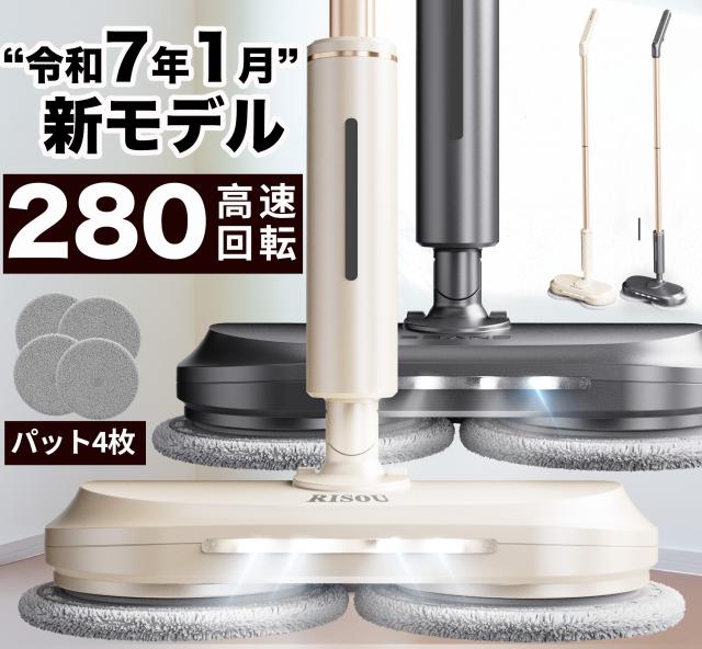 【令和7年1月新モデル】 電動モップ モップ 電動 回転モップ 電動モップクリーナー 回転モップクリーナー 高速回転 替えパッド2枚 コードレス電動モップ 充電式 電動 フローリング 掃除 床掃除 掃除グッズ 送料無料 新作 RS-031
