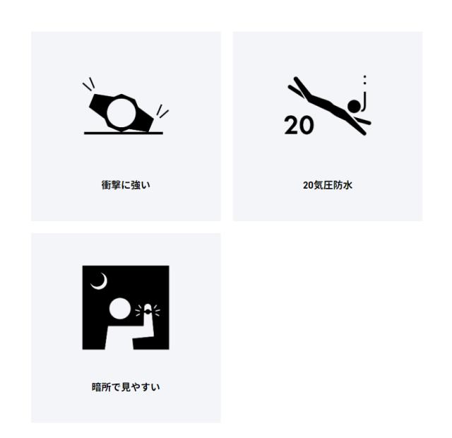 ・防水性能:20気圧防水