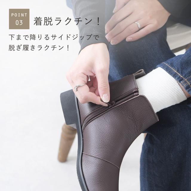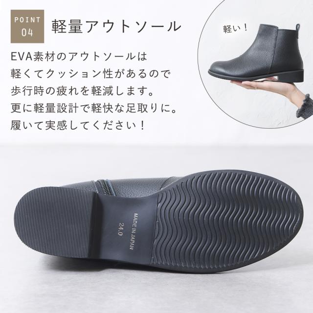ショートブーツ レディース 本革 レザー サイドジップ ローヒール ヒール無し つま先まるい 痛くない 歩きやすい 柔らかい 疲れない 軽量 軽い 滑らない 履きやすい 通勤 通学 オフィス フォーマル おしゃれ きれいめ カジュアル 靴 日本製 仕事用 黒 ブラック 秋 冬 春新作