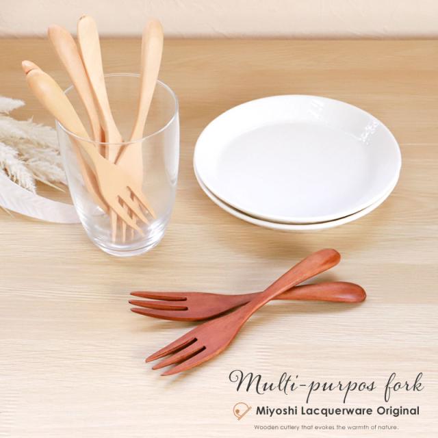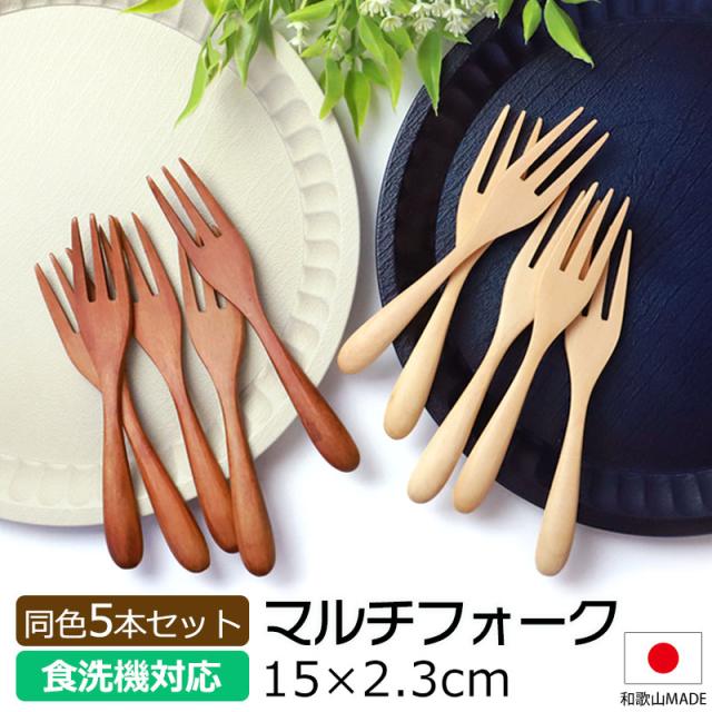 マルチフォーク 食洗機対応 15cm 5本セット 木製 送料無料 おしゃれ かわいい みよし漆器本舗オリジナル ナチュラル シンプル アウトドア 漆器 軽い 軽量 白木 漆塗り 北欧風 カフェ風 カトラリー 紀州PROコート 日本国内自社製造