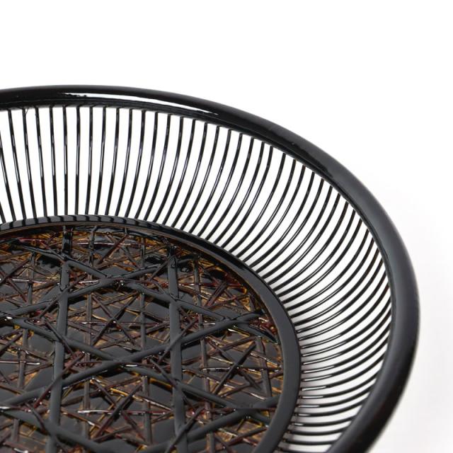 籃胎漆器とは竹で編んだ器に漆をかけ、幾重にも研ぎ出して装飾加工を施し仕上げたぬりものです。