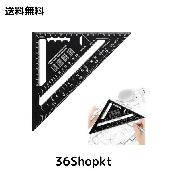 【三角定規】木工 丸鋸定規ユニークなデザイン、木工の基本的な測定道具として使用されています、三角形の正面には快速転換表があり、必要な角度を素早く描くことができます、測定ウッドフレームの方向のマーク付け、平行線の描画などに役立ちます。