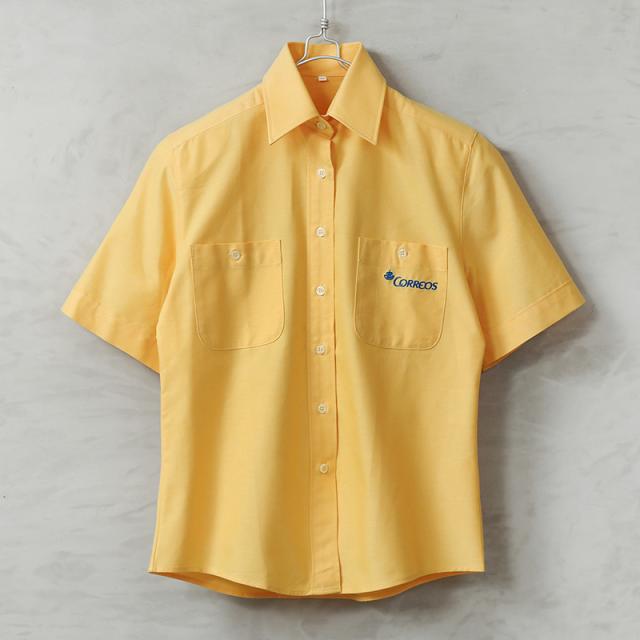 実物 新品 デッドストック スペイン Correos コレオス ショートスリーブ ボタンダウンシャツ レディース イエロー【Cx】【I】 |アメカジ メンズ 半袖 コットン ポリエステル ワークシャツ ユーロワーク