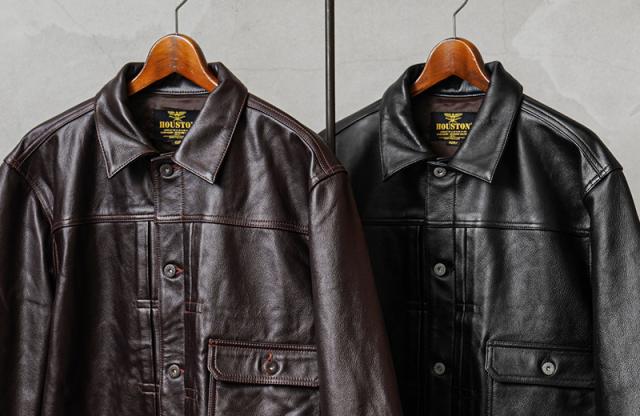 HOUSTON ヒューストン 8215 カウレザートラックジャケット 1stタイプ【R】|革ジャン レザージャケット アメカジ ミリタリー メンズ アウター 経年変化 Tバック ドーナツボタン シンチバッグ