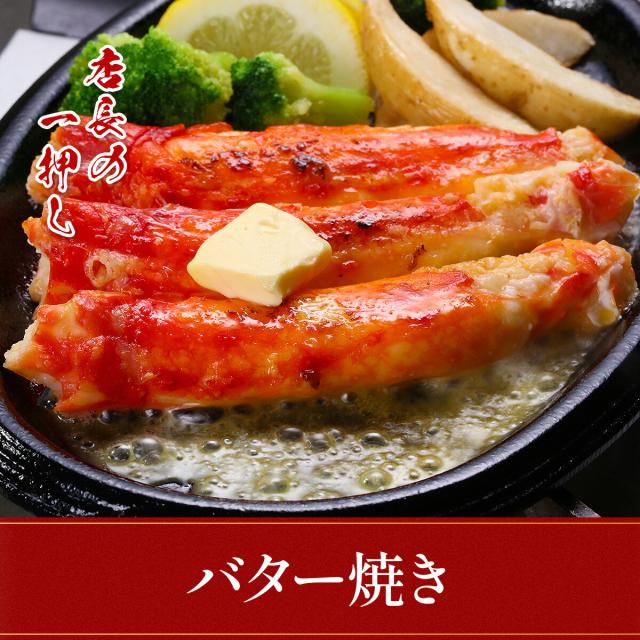 タラバガニの魅力はなんといっても、ズワイガニや毛ガニとは比べものにならない足の太さです。極寒の海で水揚げされた身入りの良いタラバガニを厳選し、船上で活〆ボイルし美味しさそのまま急速凍結した一級品です。今回は特別に太脚のみを厳選し、食べやすく殻をむいてお届け!自然解凍するだけでそのままお召し上がりいただけますが、個人的にお勧めなのが、バター焼き。ホットプレートやフライパンでサッと炙ると、その香ばしさが身にささり、グッと甘みが倍増します。大きさといい、味といいタラバガニの魅力を存分に楽しめる逸品です。ご贈答やお友達との忘年会や新年会、そしてご家族の集まりに是非このタラバガニをお試しください!