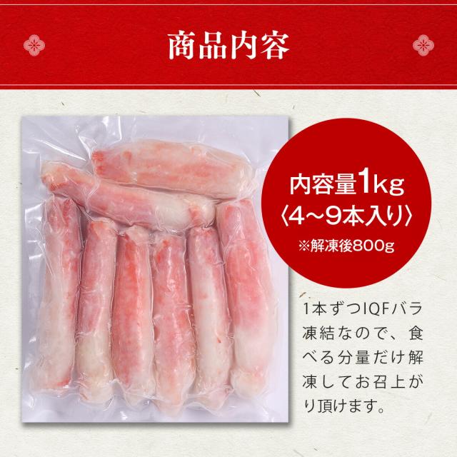 ★半額クーポンで⇒11,990円!★ 緊急スポット数量限定のため完売次第終了⇒【可食部100%】 ボイルたらばがに 極太棒肉 たっぷり1kg(4〜9本入り) ※解凍後800g タラバガニ かに カニ 蟹 t_hp 年末お届け可能 冬ギフト 年末年始