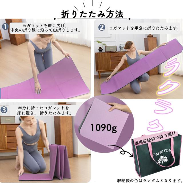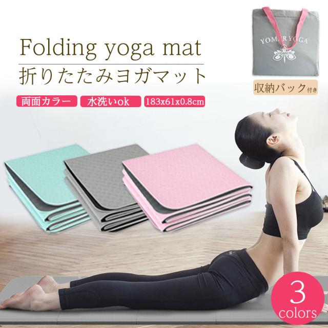 ヨガマット 折りたたみ 8mm TPE 3色 両面カラー 収納バック付き 厚手 軽量 滑り止め エクササイズマット ホットヨガマット 初心者 コンパクト 自宅トレ マット トレーニング 腹筋 おしゃれ ストレッチマット ピラティス ストレッチ ヨガ ヨガラグ ホットヨガ 持ち運び