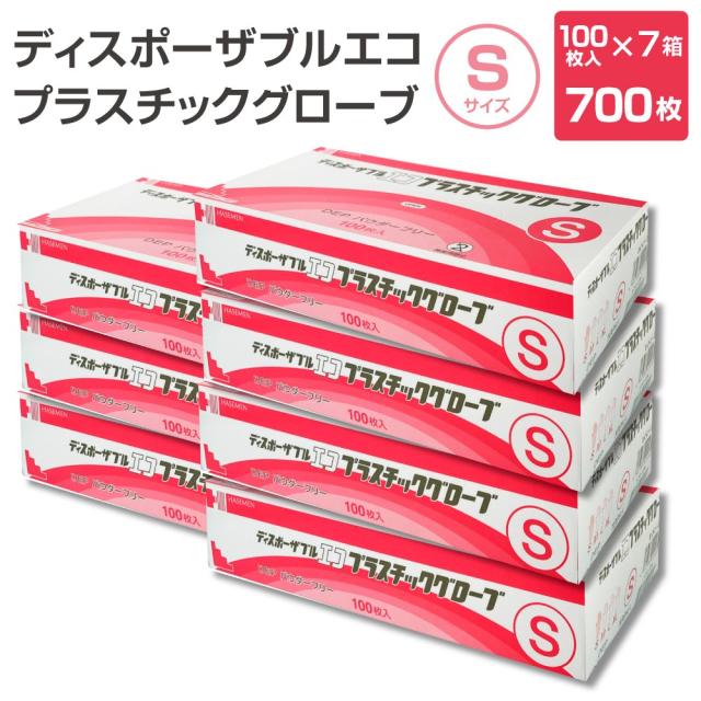 PVC 使い捨て手袋 Sサイズ 700枚 7箱セット ディスポーザブル エコ プラスチック グローブ 100枚入 1箱 粉なし パウダーフリー 長谷川綿行 極薄 半透明 業務用 掃除 清掃 介護 ビニール手袋 PVC手袋 使い切り手袋 ストック