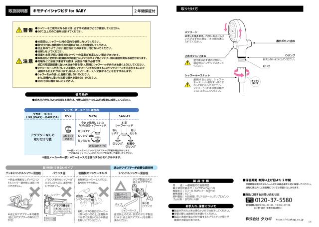 シャワーヘッド タカギ 浄水 止水ボタン シャワー ベビー 赤ちゃん コンパクト 肌あたり やさしい 沐浴 塩素除去 保湿 肌ケア ベビーケア G1/2 takagi JSB027A キモチイイシャワピタBABY 2年間保証 公式 送料無料 手元スイッチ
