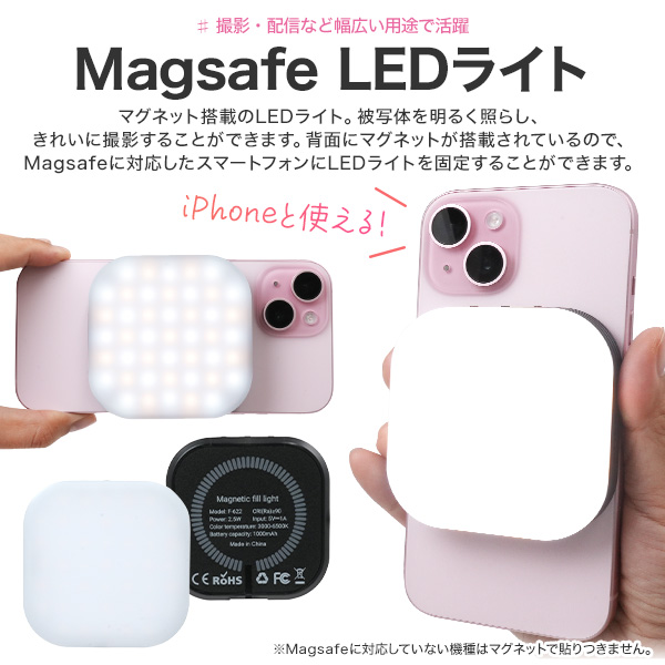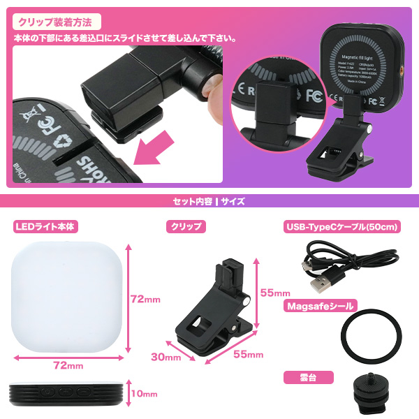 【セット内容】LEDライト本体/クリップ/USB-TypeCケーブル(50cm)/Magsafeシール/雲台
