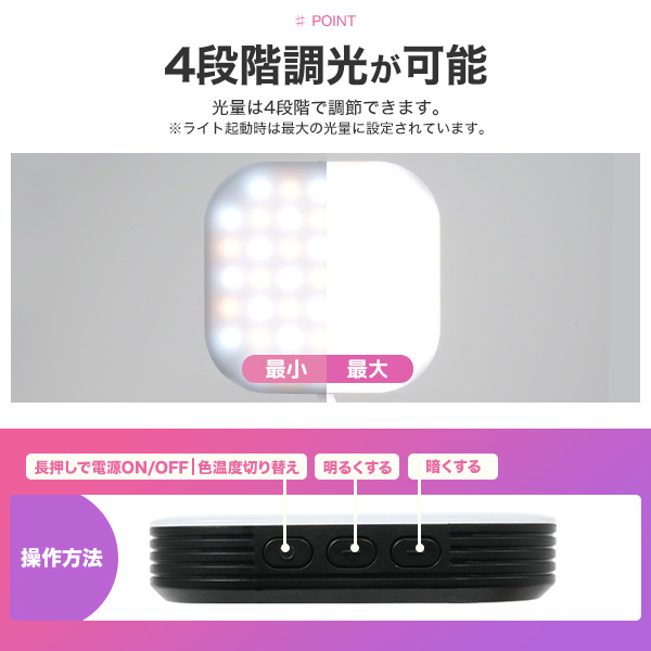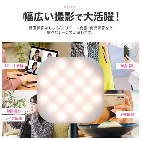 【関連キーワード】撮影用品 動画 ライブ配信 照明 ledライト LEDライト 撮影照明 撮影ライト 他撮り 他撮り風 撮影に ズーム会議 ウェブ会議 リモート会議 リモート面接 iPhone android ビデオ通話 料理動画 動物動画 記念撮影 卒業式 入学式 結婚式