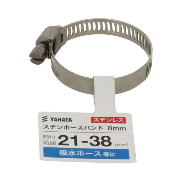 THT(八幡ねじ) ステンホースバンド 8mm ネジ締めタイプ 締付範囲21-38mm (×5個) 吸水ホース等に