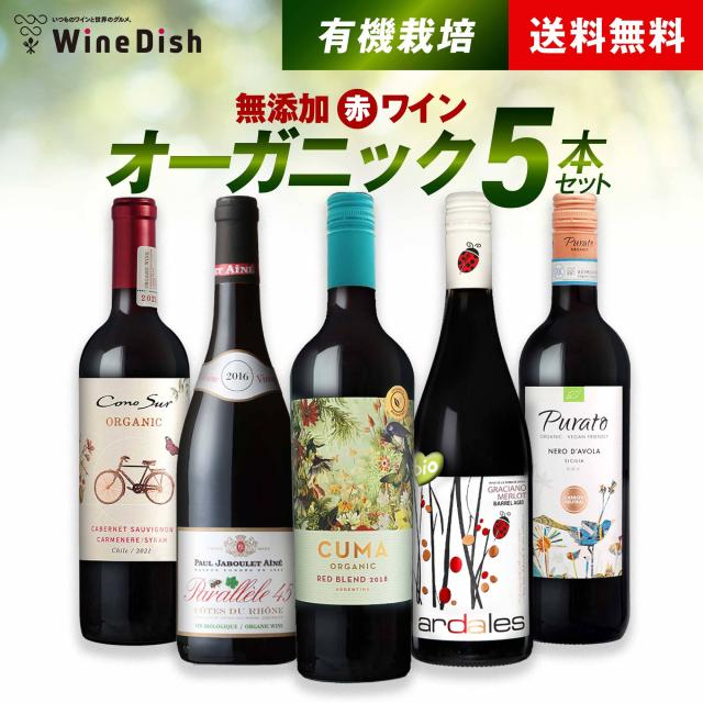 【赤】安心安全 環境に優しくて美味しい オーガニック赤ワイン 5本 飲み比べ WineDish ワインディッシュ 送料無料 WineDish クリスマス_dk