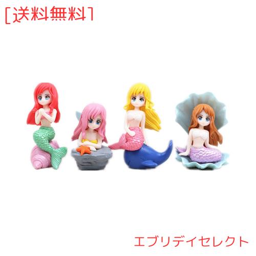 【ミニチュアサイズ】ポーズの異なる4個のマーメイドフィギュアが登場します。サイズは約5cmで、小さくてかわいい、ケーキトッパーとして最適です。とてもユニークでかわいくて、お姉さん、娘、孫娘、姪、友達へのプレゼントにもなります。