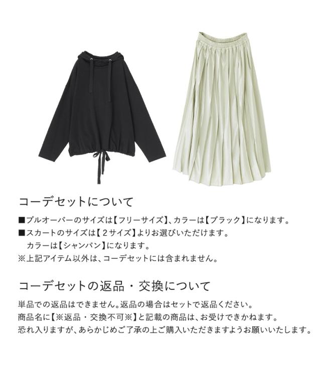 1,000円オフ4日0時迄 【送料無料】『スタンドフーディプルオーバー×メタリックプリーツスカートコーデ2点SET』【メール便不可】【30】[2点コーデセット 2024 レディース トップス 長袖カットソー プルオーバー ボトムス ロングスカート]