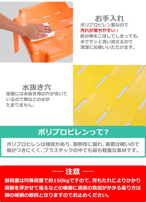 ガーデンチェアー 1脚 UVカット 選べる7カラー 耐荷重150kg ポリプロピレン製 PP 軽量で持ち運び簡単 水抜き穴 ガーデンファニチャー ガーデン ガーデンチェア キャンプチェア アウトドア アウトドアチェア お洒落 スタッキング プラスチック gchairb131p