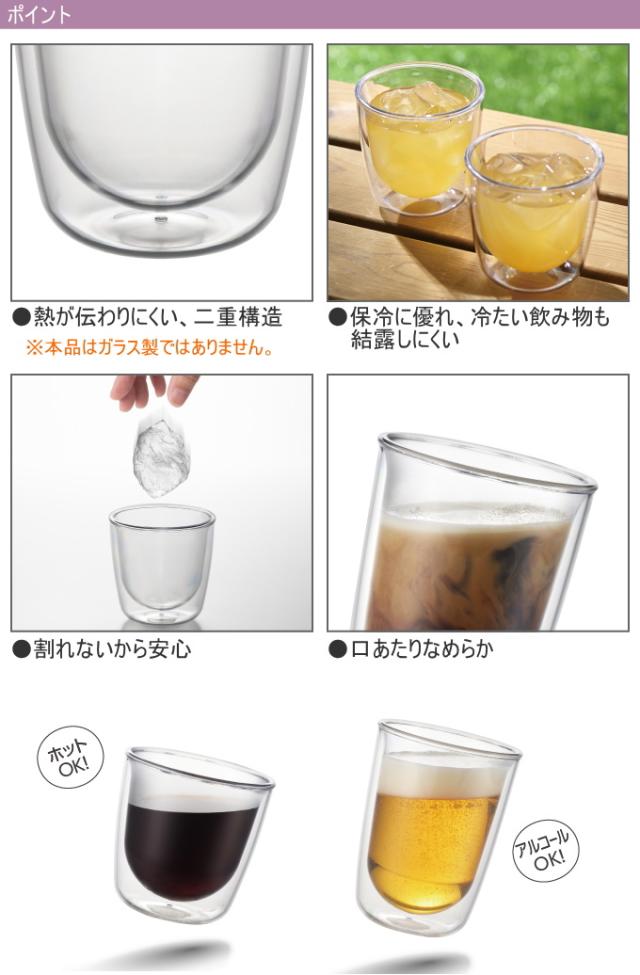 われないダブルウォールグラス ワイド 300ml TW-3781 日本製 トライタン ホット 軽量 食洗機可 二重構造 曙産業