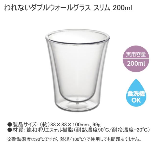 われないダブルウォールグラス スリム 200ml TW-3782 日本製 トライタン ホット 軽量 食洗機可 二重構造 曙産業