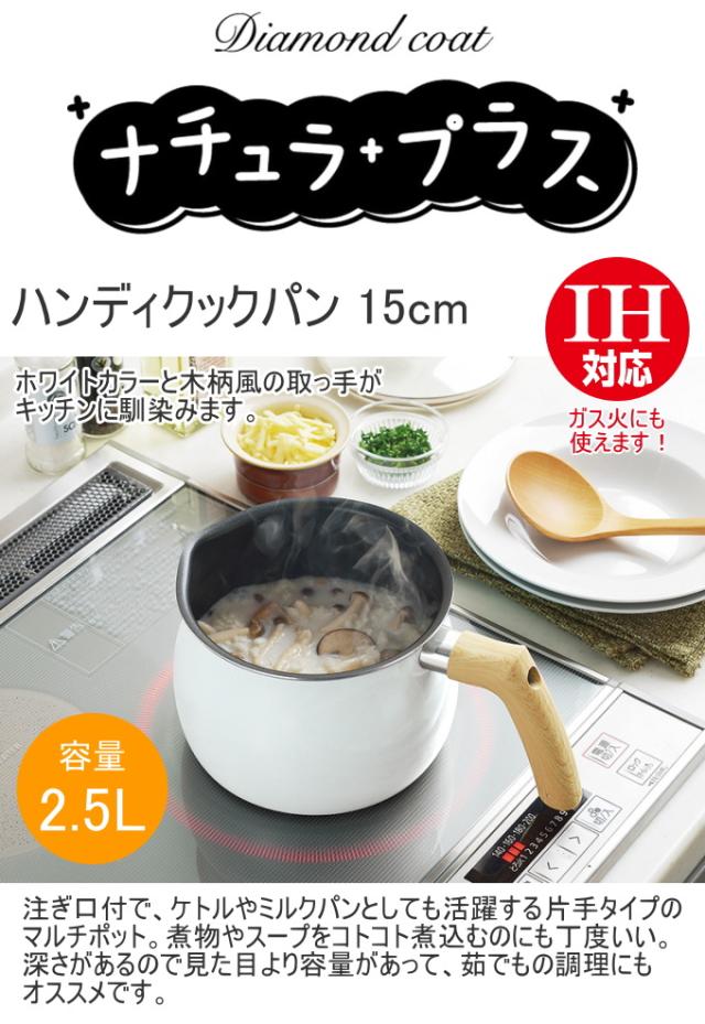 ナチュラプラス IH対応 ハンディクックパン 15cm NRP-07 送料無料 200V対応 ガス火 ふっ素加工 焦げつきにくい