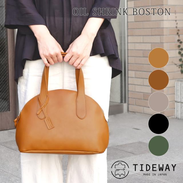 商品カテゴリ:【キャメル】【茶】【ブラウン】【濃茶】【トープ】【灰】【ブラック】【黒】【グリーン】【緑】 tideway-t3058 T3058 ボストンバッグ レディース TIDEWAY タイドウェイ 牛革 OIL SHRINK BOSTON オイルシュリンク シンプル ミニボストン