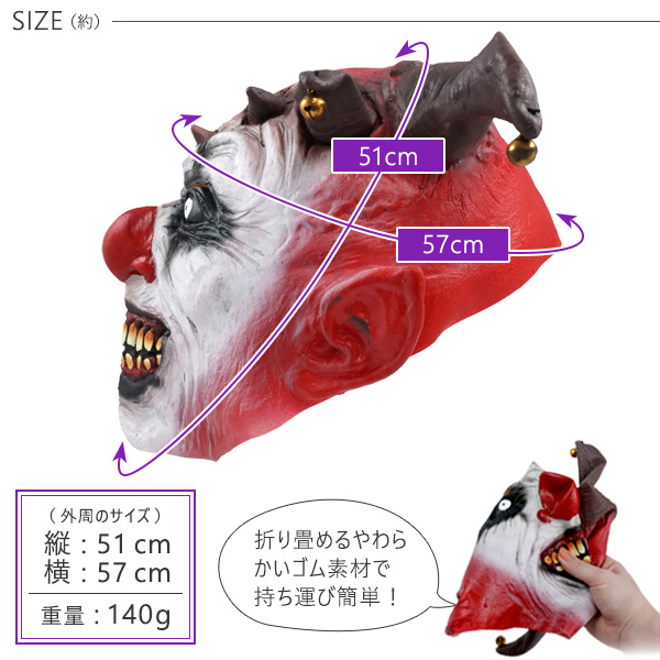 ホラーマスク 【デビルピエロ】 ゴム製 被るだけ 簡単 簡易 コスプレ 仮装 ハロウィン Halloween プチ仮装 お化け屋敷 学祭 文化祭 衣装 ホラーハウス 出し物 舞台衣装 造形マスク 学園祭 イベント ハロウィンパーティー 肝試し リアル 怖いマスク 本格派 白 サイコ