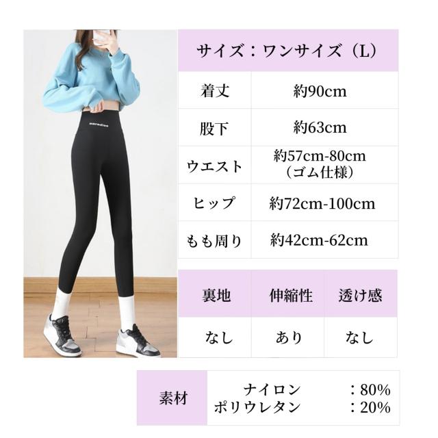 着丈:約90cm 股下:約63cm ウエスト:約57-80cm(ゴム仕様) ヒップ:約72-100cm もも周り:約42-62cm