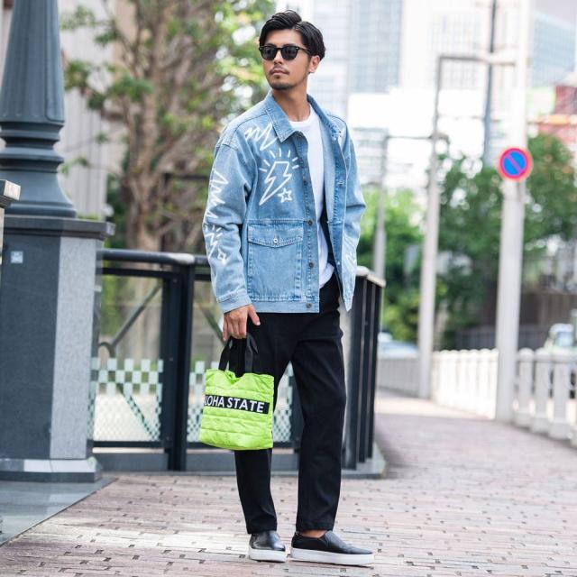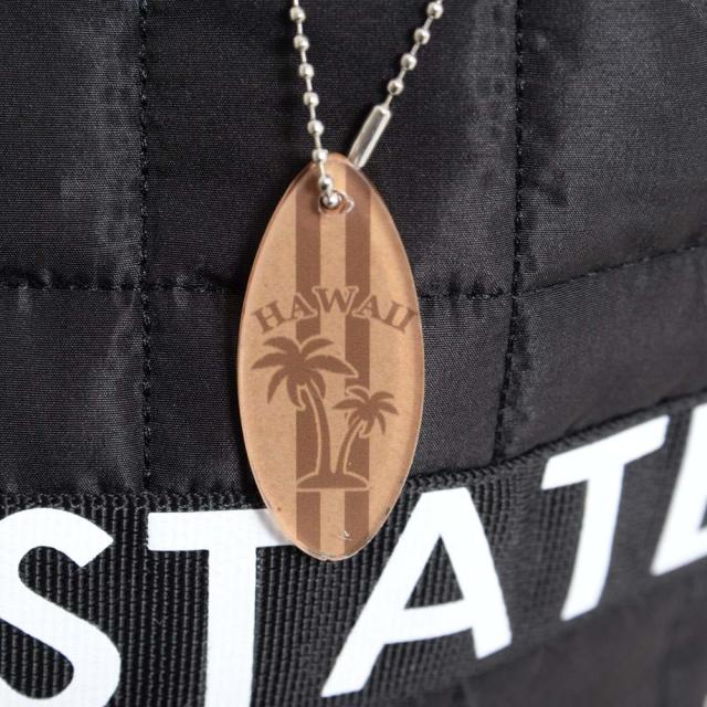 【ALOHA STATE】のテープ使いに、取り外し可能のサーフボード型のアクリルチャームがポイント。