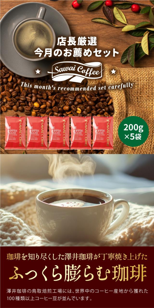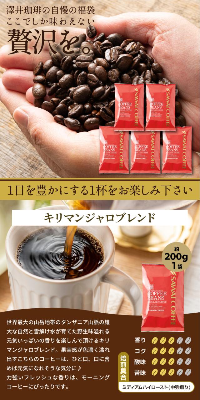 3月のおすすめレギュラーコーヒー福袋 200g×5袋 100杯分 焙煎したて コーヒー豆 1kg 珈琲豆 送料無料 コーヒー 福袋 大容量 中挽き/豆のまま コーヒー専門店 飲み比べ セット 澤井珈琲