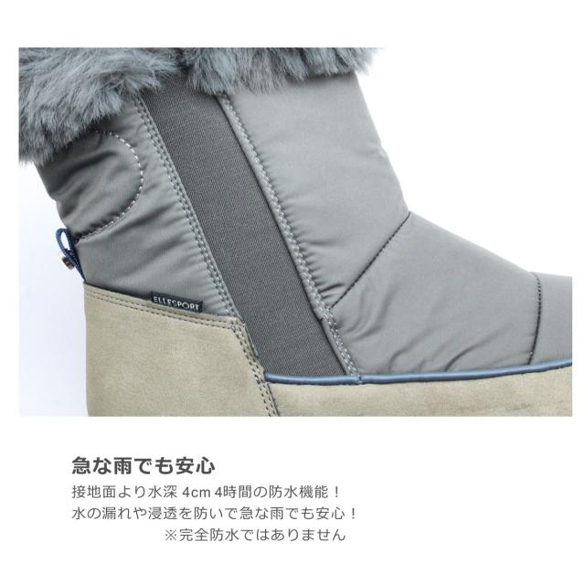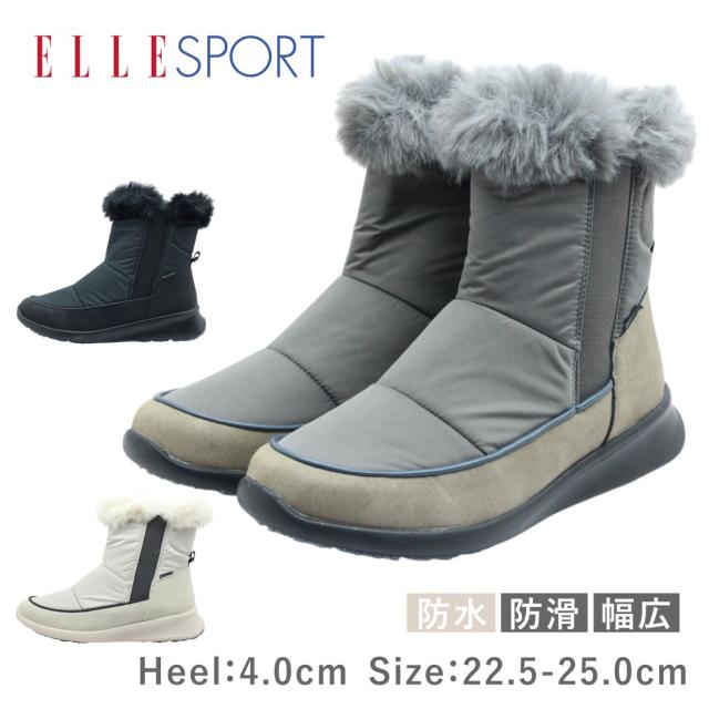 ELLE SPORT エルスポーツ レディース ブーツ ESP 12589 ショート サイドゴア ジップ 防水 防滑 歩きやすい 3E 幅広 雨 靴 黒 白 ブラック グレー アイボリー