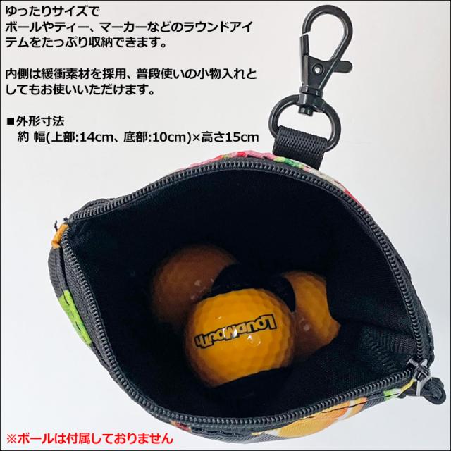 ゆったりサイズで、ゴルフボールはもちろん、ティーやマーカーなどラウンドアイテムが収納可能。