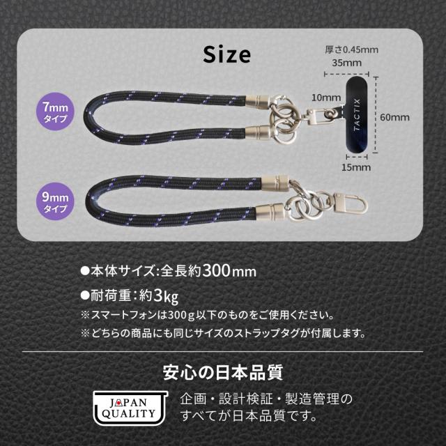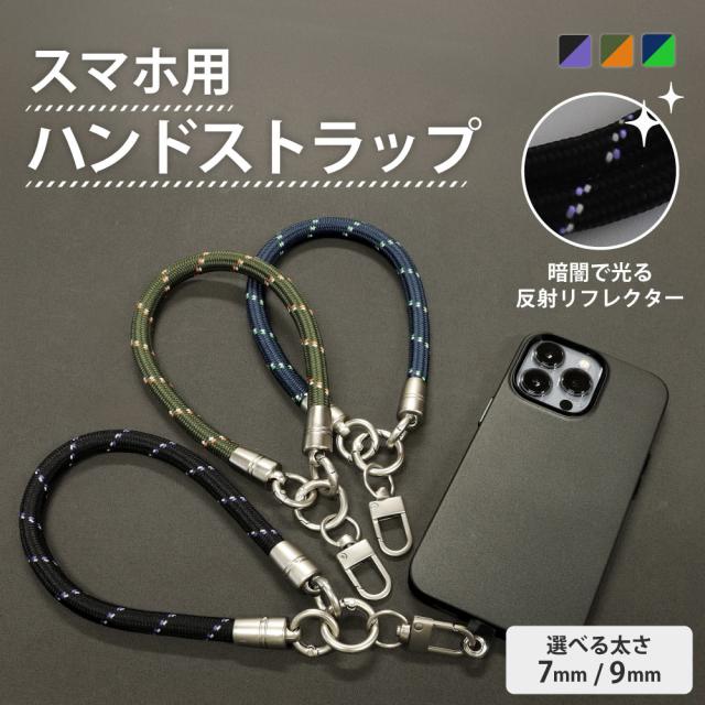 スマートフォン用 ハンドストラップ(7mm/9mm) 反射材編み込み TACTIX(タクトナイン)