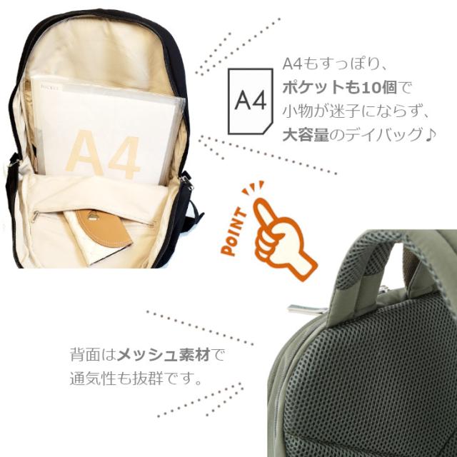 アネロ アネログランデ anello Glande リュック デイパック バックパック レディース リュックサック ボディバッグ 10ポケット 15L MOIST A4 シンプル おしゃれ 使いやすい 通学 通塾 多収納