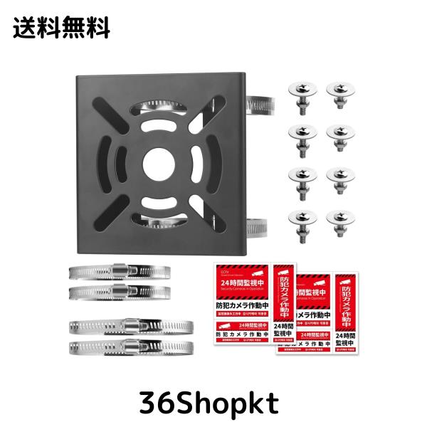 ??防犯カメラ 取付金具:?1.防犯カメラ 取付金具は12個の取付穴と、中央に1つ大きめの穴を適正に設置しましたので、あらゆるものを設置出来ます。?2.防犯カメラ 取り付け金具は柱や壁に穴を開けることなく、ポール/コンクリート柱/木柱/格子フェンス/金網フェンス/などの強度がある場所に取り付けられます。?3.防犯カメラ ブラケットは防犯カメラだけではなく、看板/ソーラーパネル/ミラー/ウォルボックス/プラボックスなどもサポートします。