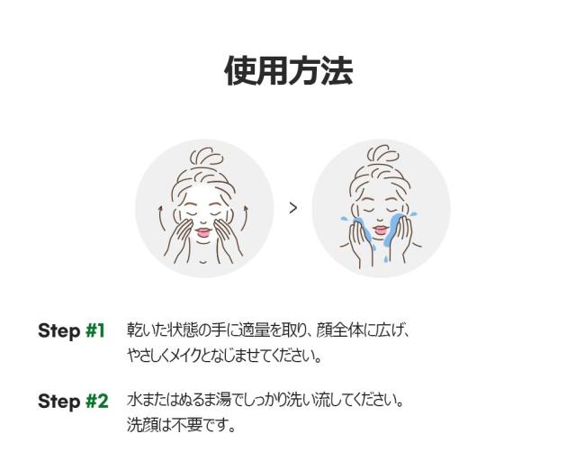 1.乾いた状態の手に適量を手に取り、顔全体に広げ、やさしくメイクとなじませてください。