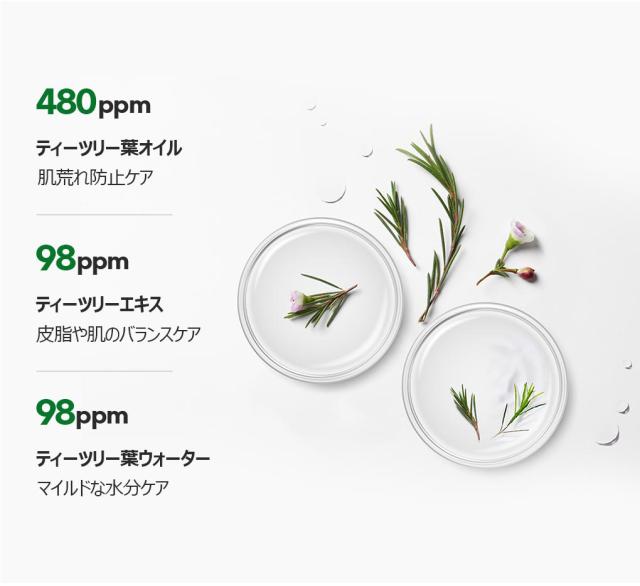 ・480ppm ティーツリー葉オイル:肌荒れ防止ケア