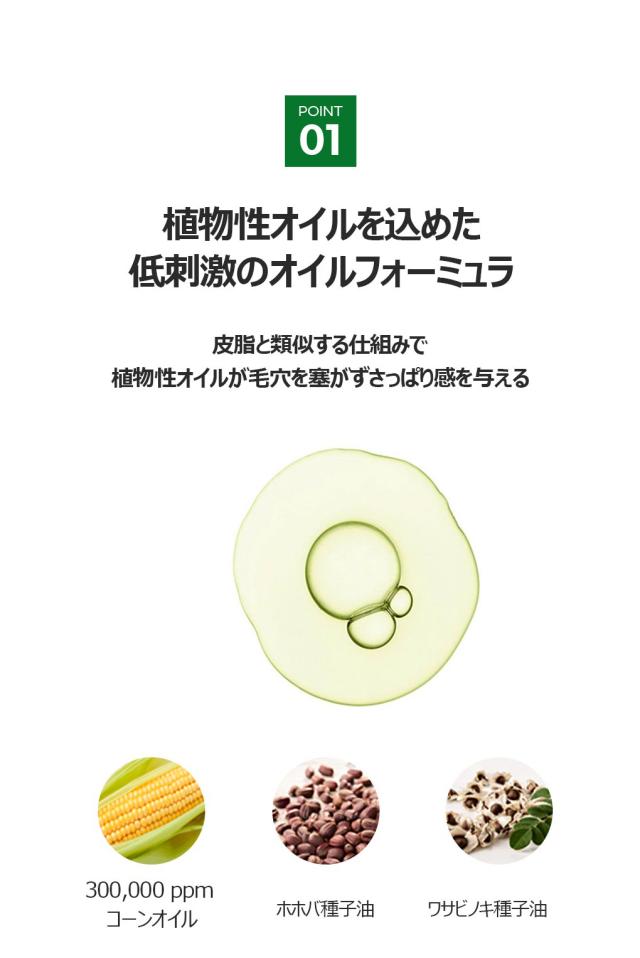 成分:パルミチン酸エチルヘキシル、コーン油、テトラオレイン酸ソルベス—30、トリイソステアリン酸PEG—20グリセリル、ラウリン酸PG、水、ホホバ種子油、ローズマリー葉油、ラベンダー油、グレープフルーツ果皮油、リモネン、ラバンデュラハイブリダ油、リナロール、ティーツリー葉油、ユーカリ葉油、メリアアザジラクタ葉エキス、ティーツリー葉水、ティーツリーエキス、ツボクサエキス、ドクダミエキス、オウシュウヨモギエキス、セイヨウシロヤナギ樹皮エキス、メリアアザジラクタ花エキス、オポポナックス油、コクシニアインディカ果実エキス、ローマカミツレ花/葉/茎油、BG、ナス果実エキス、コハク、1,2—ヘキサンジオール、ウコン根エキス、カミメボウキ葉エキス、ワサビノキ種子油、サンゴモエキス、グリセリン、パパイン