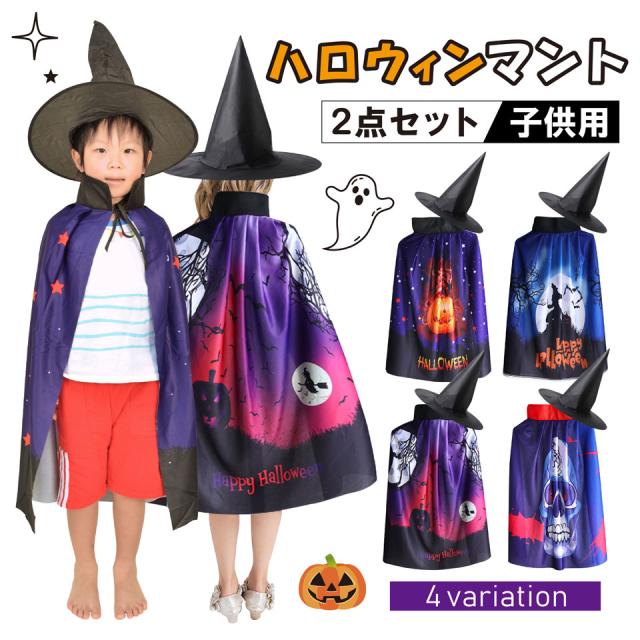 ハロウィン 衣装 子供 ハロウィン 衣装 子供 カラーマント ハロウィン 子供用マント 帽子付 2点セット ハロウィン衣装 子供 コスチューム キッズ 衣装 イベント マジシャン 仮装 パーティ ハロウィン マント ステージ衣装