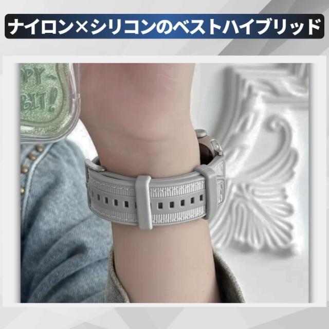 シリコンの柔らかさとナイロンの耐久性を兼ね備えたこのバンドは、スポーツやゴルフなどのアクティブシーンに最適です。また、シンプルでおしゃれなデザインなので、日常使いにもぴったり。軽量でフィット感抜群のため、普段の生活から激しい運動まで快適にサポートします。