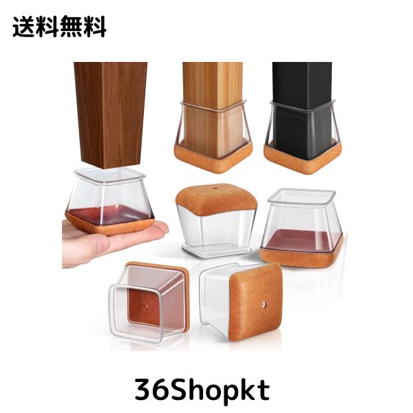 椅子脚カバー四角 椅子の脚カバー椅子脚カバーシリコン 家具足 傷防止 防音 滑り止め 角脚用フェルト巻16個 透明 M-20~26mm