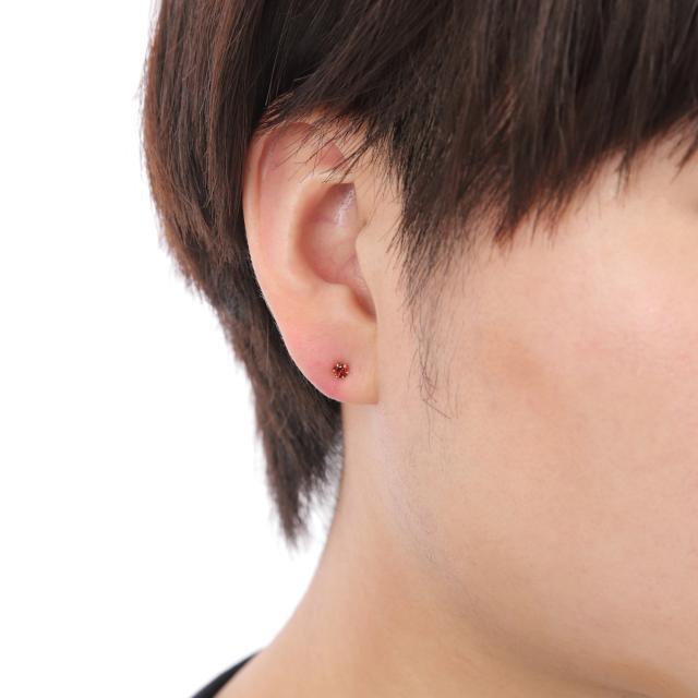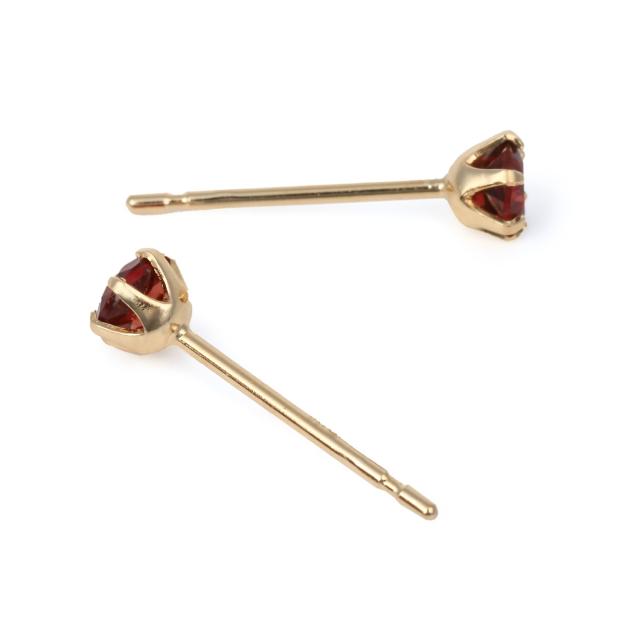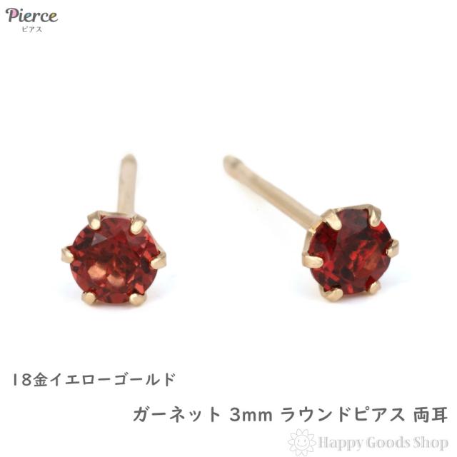 18金 ピアス ガーネット 3mm ラウンド 両耳 ゴールド レディース メンズ シンプル アクセサリー 1月 誕生石