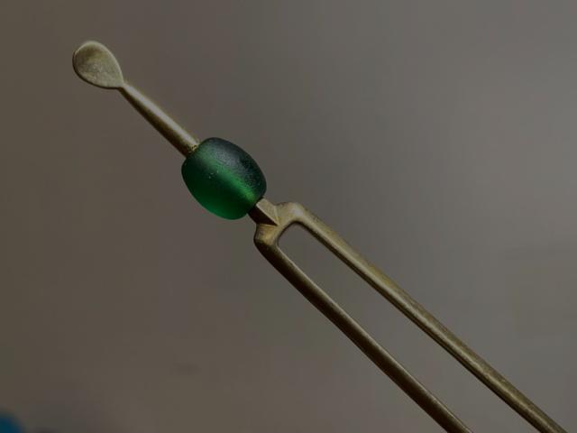 KZ4-49 一点物 深碧色 七宝るり玉 七宝碧瑠璃玉 昭和風 二本軸 定番タイプ 簪 かんざし