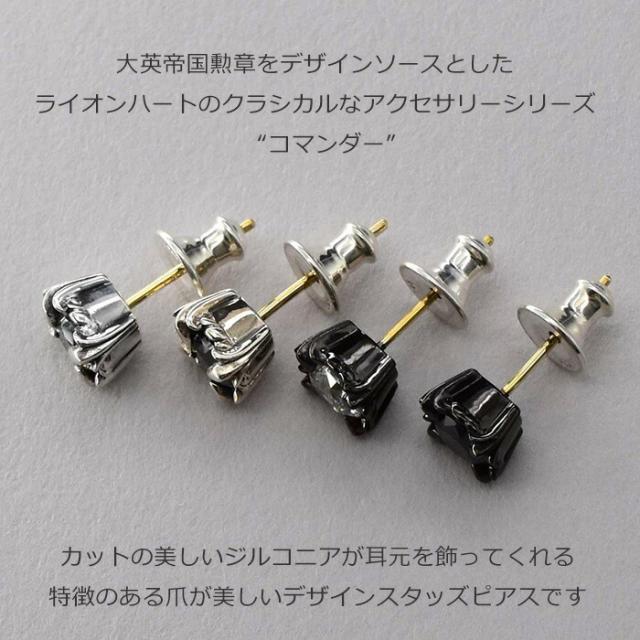ライオンハート BASIC KINGDOM コマンダーストーンピアス シルバー925 クリア x シルバー 01EA0181CL LION HEART 18Kポスト キングダム ピアス 1点売り 片耳用 キャッチ メンズ ブランド プレゼント 誕生日