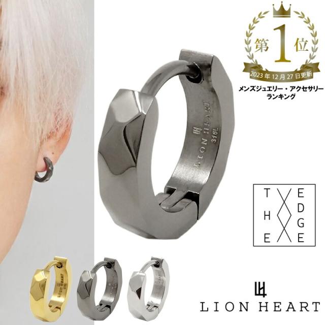 ライオンハート LH-1 “THE EDGE” カッティング フープピアス サージカルステンレス ライトブラック/シルバー/ゴールド 03EA0015 LION HEART 1点売り 片耳用 リング 中折れ シンプル メンズピアス プレゼント 誕生日 メール便対応