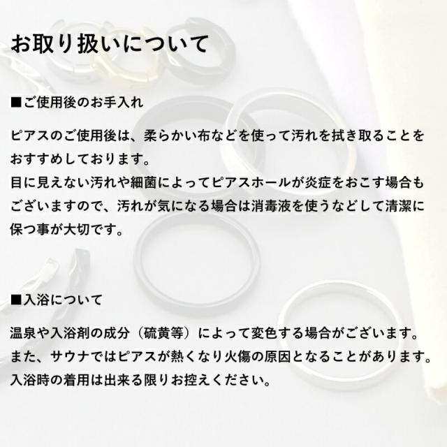 ※ポスト(シャフト)に使用されているサージカルステンレスは金属アレルギーに強い素材ですが、アレルギー反応の原因は様々な為、100%反応しないことをお約束できません。予めご了承ください。