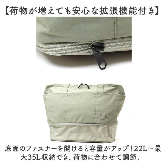 | 商品説明 | 【拡張もできてバツグンの収納力】 ・荷物の多いお出かけにおすすめ◎持ち歩きもラクラク「anello ガイド 拡張トート」。 【軽量&撥水でアクティブシーンに】 ・旅行やレジャーで大活躍☆ドライタッチな軽量素材に、汚れや水滴を弾きやすい両面撥水仕様。 (※1)完全防水ではありません。 【荷物が増えても安心な拡張機能付き】 ・底面のファスナーを開けると容量がアップ!22L〜最大35L収納でき、荷物に合わせて調節。 【肩掛けできてストレスフリー】 ・厚手のアウターの上からでも、肩に掛けやすい長さのハンドル。移動の多い日も快適。 【ガバっと開くダブルファスナー】 ・左右どちらからもオープン!取り出しやすく、ファスナーを閉じればプライバシーを確保。 【たっぷり入って頼りになるサイズ感】 ・A4がすっぽり。マチがしっかりあり、着替えなどもざっくり収納できる大容量タイプ。 (※2)B4サイズも収納できる大きさですが、他の荷物が多く入っていると角が折れたり、ファスナーが閉まりにくい可能性があります。 【サクッと取り出せて迷子知らず】 ・内側・外側合わせて7個のポケットを配置。整頓しやすく、バッグの中で小物を探す手間が不要。 【キャリーオンOKで移動もスマート】 ・背面の面ファスナーベルトをキャリーのハンドルに差し込める、キャリーオン仕様。 【お揃いで持てるユニセックス仕様】 ・使う人を選ばないシンプルデザイン&カラーリング☆家族やカップルで、お揃いやシェアもOK。 【ポケット仕様】 ・内側:ファスナーポケット×1、オープンポケット×2 ・外側:オープンポケット×3 ・背面:ファスナーポケット×1 |