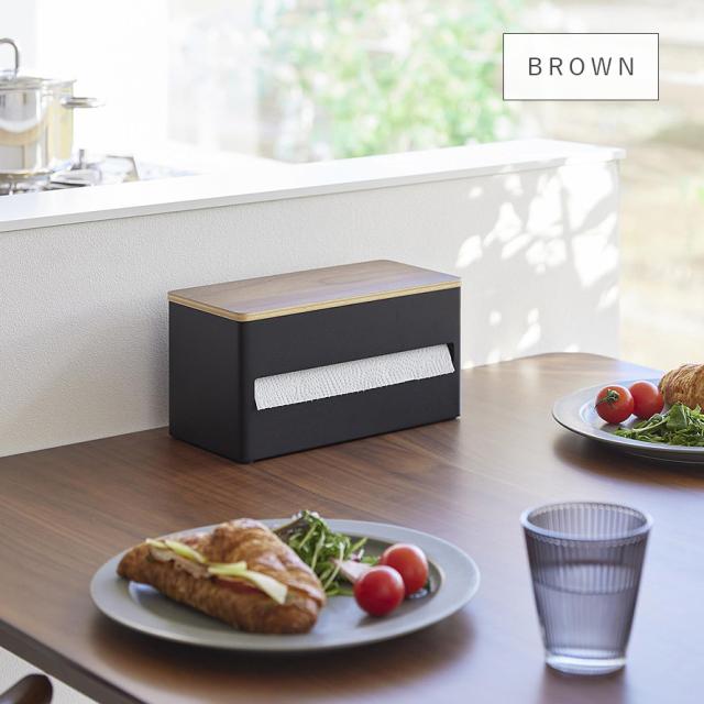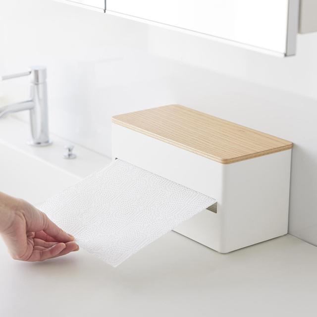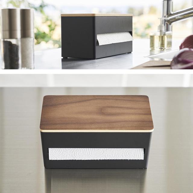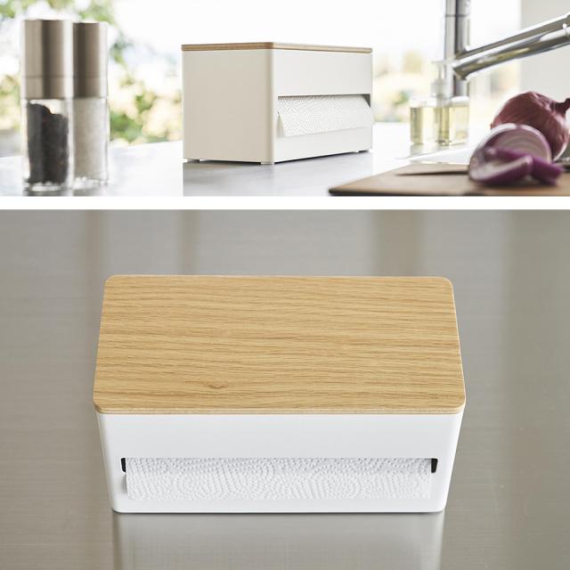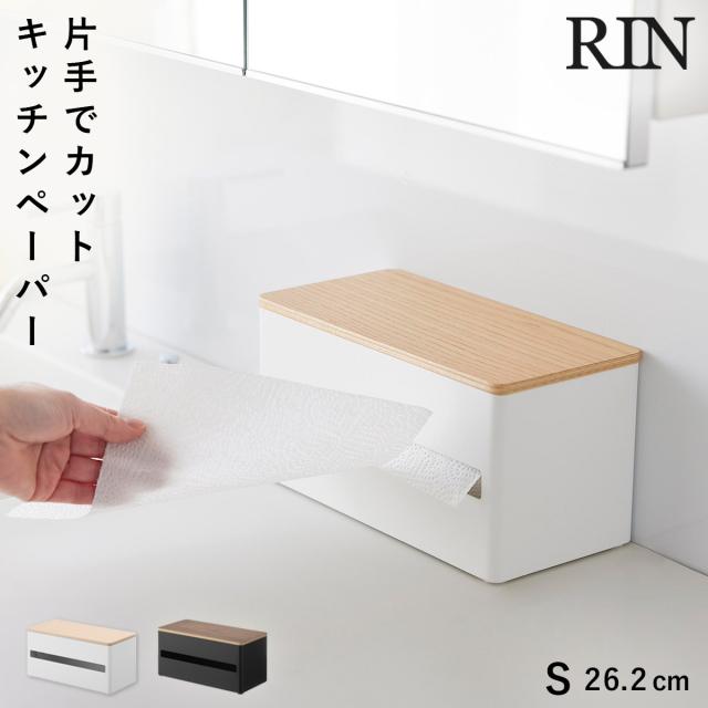 片手でカット隠せるキッチンペーパーホルダー リン S 山崎実業 RIN キッチンペーパー ホルダー マグネット 片手 木目 ホワイト ブラック 1642 1643